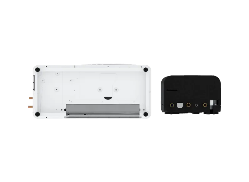 Een groot deel van de vereiste installatietechniek is al geïntegreerd in de set, zoals de hydraulische module en de aansluitcomponenten. Dit maakt de installatie voor de monteur gemakkelijk en ruimtebesparend.